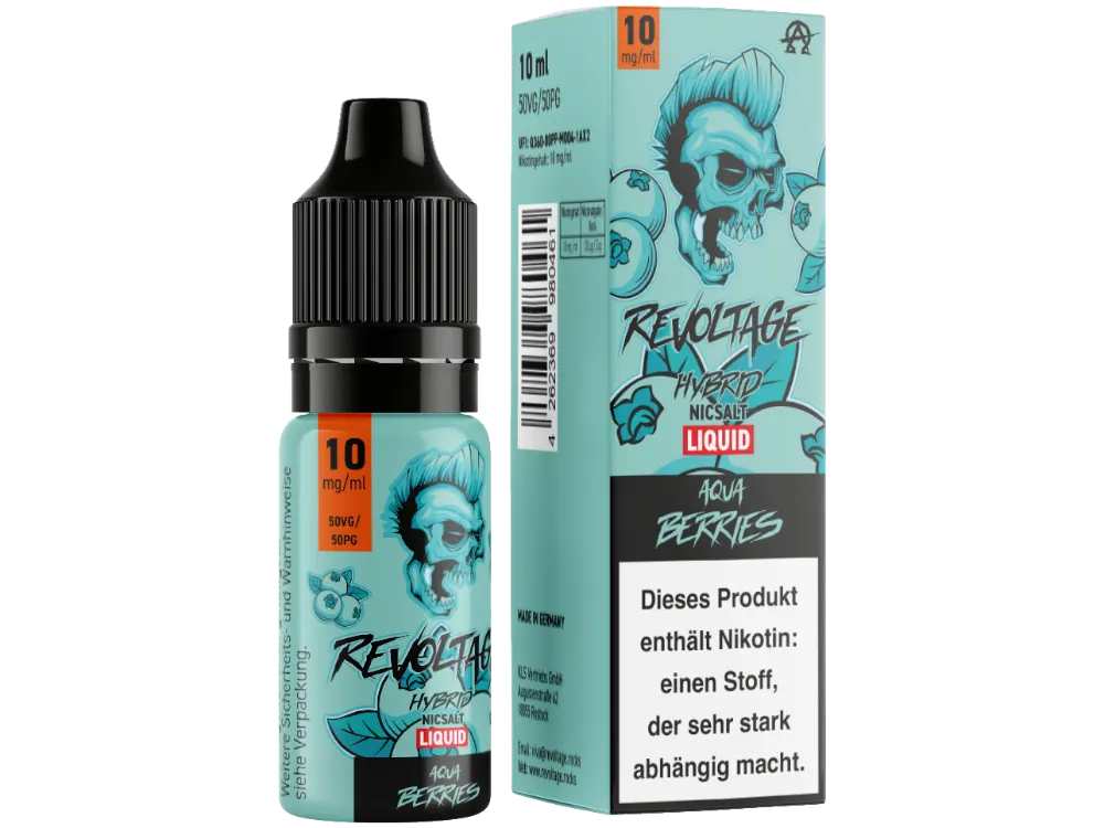 Revoltage Aqua Berries ist ein E-Liquid in der 10-ml-Flasche mit dem Geschmack von Beerenmix, Koolada und einem Nikotingehalt von 0mg, 10 mg oder 20 mg.