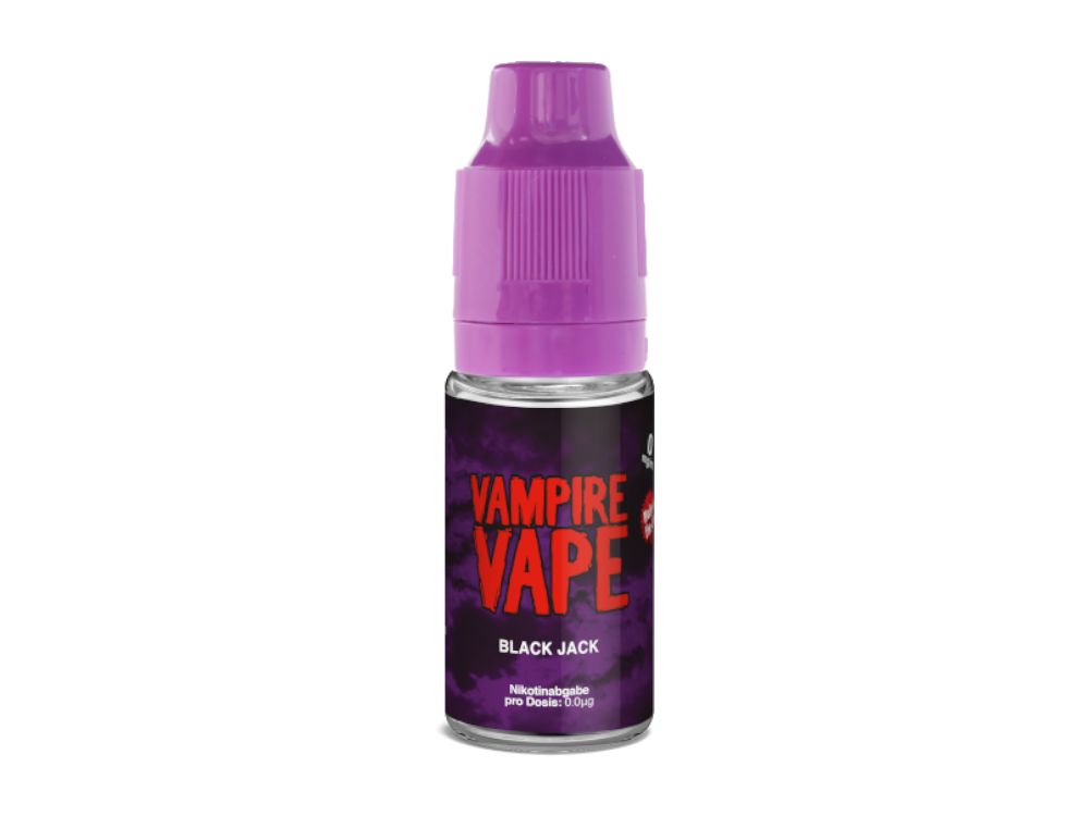 Vampire Vape Black Jack ist ein E-Liquid in der 10-ml-Flasche mit dem Geschmack von Lakritze, Anis und einem Nikotingehalt von 3mg, 6mg und 12mg.