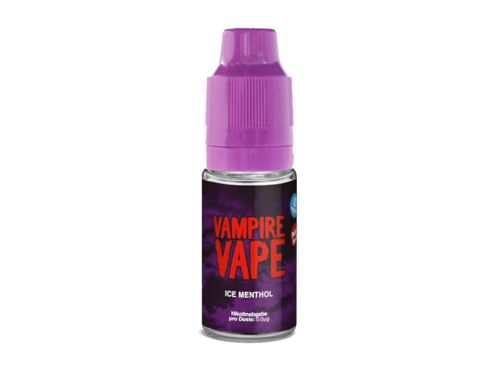 Vampire Vape Ice Menthol ist ein E-Liquid in der 10-ml-Flasche mit dem Geschmack von Menthol, Minze und einem Nikotingehalt von 0mg, 3mg, 6mg und 12mg.