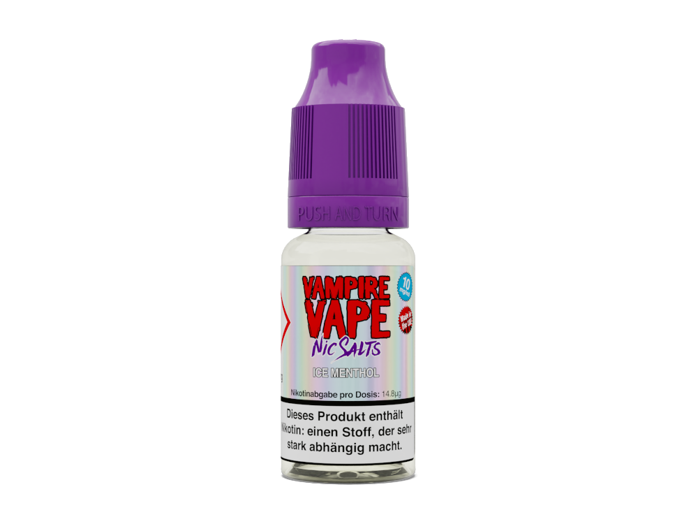 Vampire Vape Nikotinsalz Ice Menthol ist ein E-Liquid in der 10-ml-Flasche mit dem Geschmack von Menthol, Eis und einem Nikotingehalt von 10mg, 20mg.