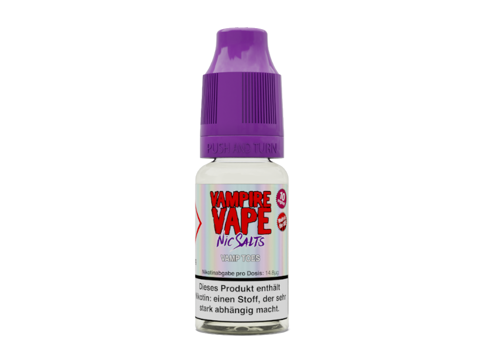 Vampire Vape Nikotinsalz Vamp Toes wurde in England hergestellt. Vampire Vape Nikotinsalz Vamp Toes ist kompatibel mit Pod Systeme von Uwell, Elfx, Voopoo und Vaporesso. Vampire Vape Nikotinsalz Vamp Toes können Sie in unserem Vape Shop günstig kaufen.