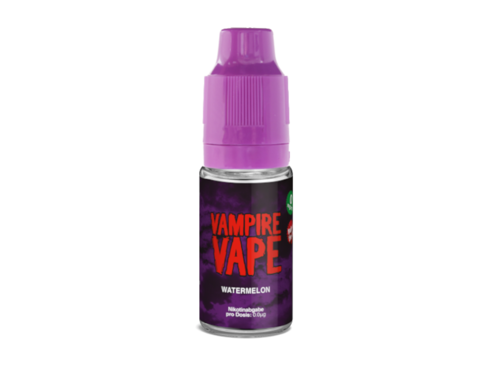 Vampire Vape Watermelon ist ein E-Liquid in der 10-ml-Flasche mit dem Geschmack von Wassermelone und einem Nikotingehalt von 0mg, 3mg, 6mg, 12mg.